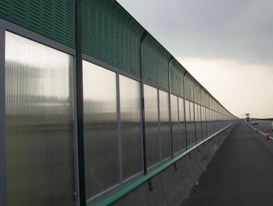 透明聲屏障:采用聚碳酸酯板制作 或雙層夾膠玻璃,外邊框是鋁合金邊框, 計(jì)權(quán)隔聲量Rw=30~40dB(A)。亞克力聲屏障框架由經(jīng)過(guò)氧化處理的鋁合金制作而成,亞克力板隔聲屏在國(guó)外應(yīng)用較多,因?yàn)樵靸r(jià)高,透光率好,使用壽命長(zhǎng)。優(yōu)勢(shì):透明采光性能好,結(jié)構(gòu)重量輕,強(qiáng)度高,壽命長(zhǎng),但價(jià)格較高,便于造型的曲線化,顏色可以調(diào)節(jié),它可以配合任何環(huán)境條件形成路橋建筑中醒目的一景。