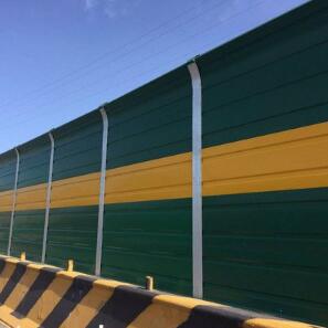 彩鋼聲屏障是一種高速開展的聲屏障資料。彩鋼隔音屏障主要由鋼柱和彩鋼屏蔽板組成。篩板內(nèi)部主要由泡沫夾層作為吸聲資料,外部為兩層彩色鋼板??捎卸喾N顏色,藍色、白色等;常用彩色鋼板隔音屏障和鍍鋅鋼板隔音屏障互相分離,吸聲和隔音,效果更好!